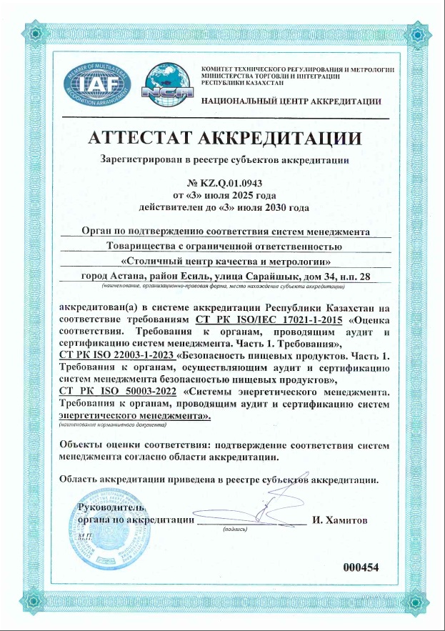 Аттестат аккредитации | Столичный центр качества и метрологии