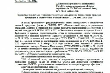 Держателям сертификатов соответствия СМБПП | Столичный центр качества и метрологии